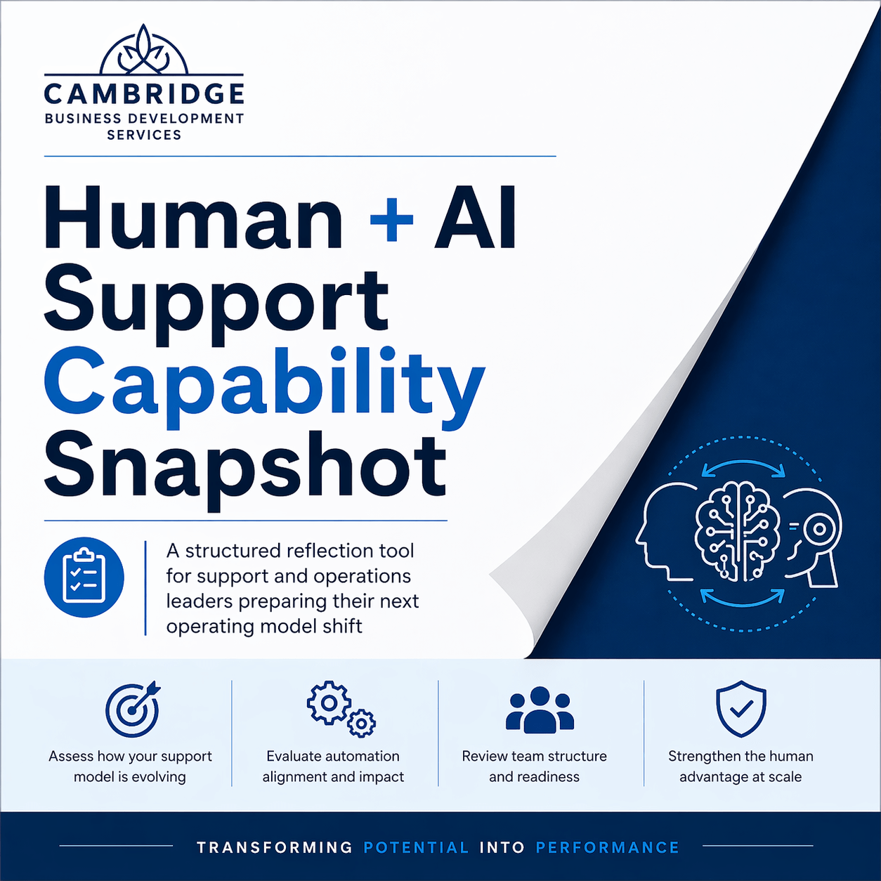 This snapshot is designed to help you step back from day-to-day delivery and assess how your support capability is evolving as scale, structure and AI capability change around it.